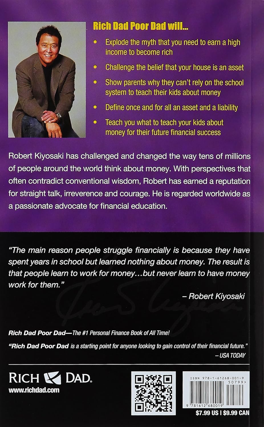 Rich Dad Poor Dad by Robert T. Kiyosaki is one of the most influential personal finance books of all time. It teaches practical lessons about money, investing, financial freedom, and building wealth through smart financial decisions. A must-read for entrepreneurs, business owners, and anyone looking to improve their financial mindset.