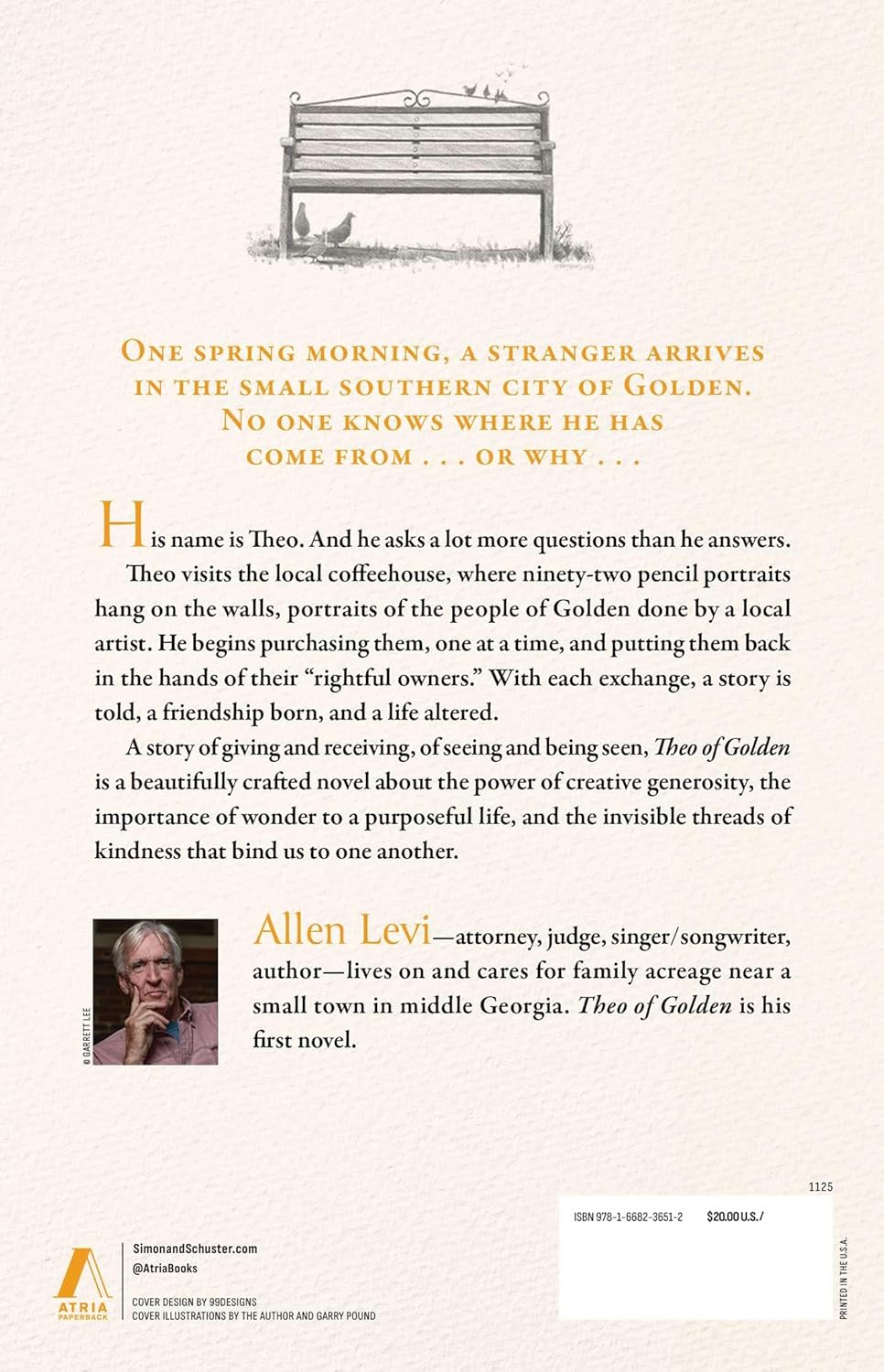 Theo of Golden by Allen Levi is a beautifully written literary fiction novel and an uplifting modern bestseller that celebrates kindness, friendship, and the invisible threads that connect people. The story follows Theo, a mysterious elderly man who quietly arrives in the small Southern town of Golden, Georgia, and slowly begins transforming lives through acts of anonymous generosity.